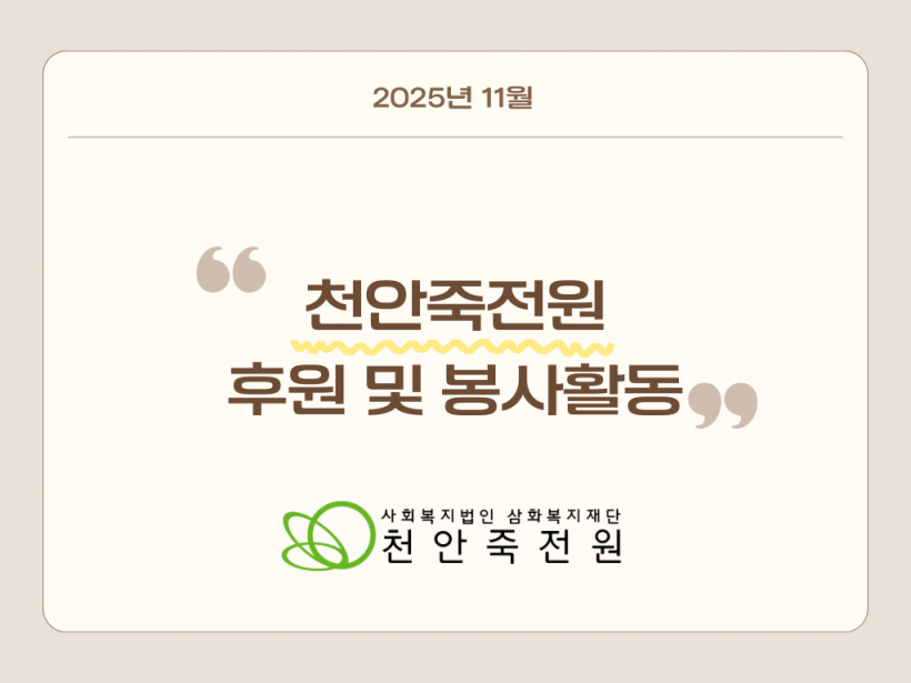 [11월] 후원 자원봉사 페이지 정보 작성자 운영자 작성일25-12-02 11:13 조회66회 댓글0건 관련링크 목록 본문 2025년 11월 후원 및 자원봉사입니다.마지막 12월 감기 조심하시고 잘 마무리 하시길 바랍니다.감사합니다. 댓글목록 등록된 댓글이 없습니다. 목록