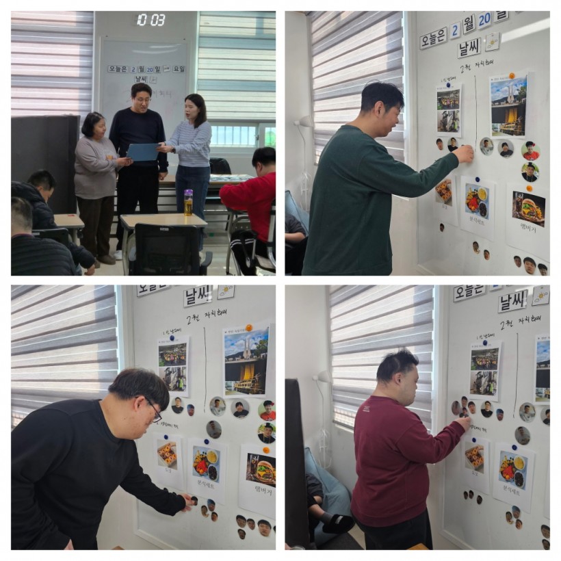 2월 자치회의 시간, 우리 센터에 설레는 순간이 찾아왔습니다. 이용인들이 직접 투표로 선출한 자치회장과 부회장의 임명식을 진행했기 때문입니다. 모두의 박수 속에 임명장을 수여하고, 두 사람의 당찬 1년 각오를 들어보는 시간은 그 어느 때보다 진지하고 빛났습니다.